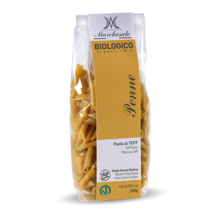 Il teff è un piccolo semino con un grande futuro. Ormai protagonista dell’alimentazione mondiale, è apprezzato per le sue eccellenti doti nutritive. Il Marchesato ha realizzato delle gustosissime penne con farina di teff per agevolare il consumo di questo prodotto, indicato per tutti i regimi alimentari. Preparare un buon primo piatto con la pasta con farina di teff del Marchesato è davvero semplice. Puoi abbinarla a ricette di carne, di verdure o a condimenti a base di formaggi. Divertiti a sperimentare ricette e combinazioni per scovare il tuo gusto preferito. Il Marchesato utilizza solo farina biologica: la qualità del prodotto è garantita. La lavorazione rende questa pasta eccezionale dal punto di vista del gusto e della resa in cucina. La pasta del Marchesato è trafilata al bronzo, essiccata lentamente a bassa temperatura. In questo modo si preservano tutte le caratteristiche organolettiche del prodotto. La pasta al teff è ruvida e porosa, proprio come un buon sugo richiede.
