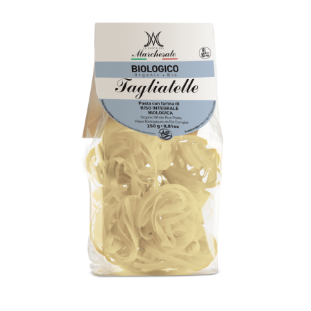 Le tagliatelle di riso integrale biologiche del Marchesato sono perfette per realizzare golosi primi piatti. Il sapore delle tagliatelle è ricco e rustico, ma mai invadente così puoi gustarle condite con i tuoi ingredienti preferiti ottenendo abbinamenti riusciti, golosi e invitanti. La farina di riso è un alimento che è naturalmente privo di glutine, per questo lo abbiamo scelto per realizzare le nostre tagliatelle. La ricetta del Marchesato non prevede l’aggiunta di altri ingredienti, questo significa che le tagliatelle di riso integrale sono la base ideale per realizzare piatti vegani, vegetariani e gluten free. I motivi per gustare le tagliatelle con farina di riso integrale del Marchesato sono molteplici: sono facilmente digeribili e buone per davvero! Qualunque sia la tua idea di alimentazione con il Marchesato trovi l’alleato perfetto per preparare i tuoi piatti preferiti